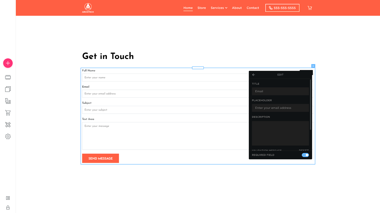 Please Note: You can add a custom validation message to specific fields: Full Name, Address, Email, Phone, Facebook, Twitter, Link, Number, Currency.