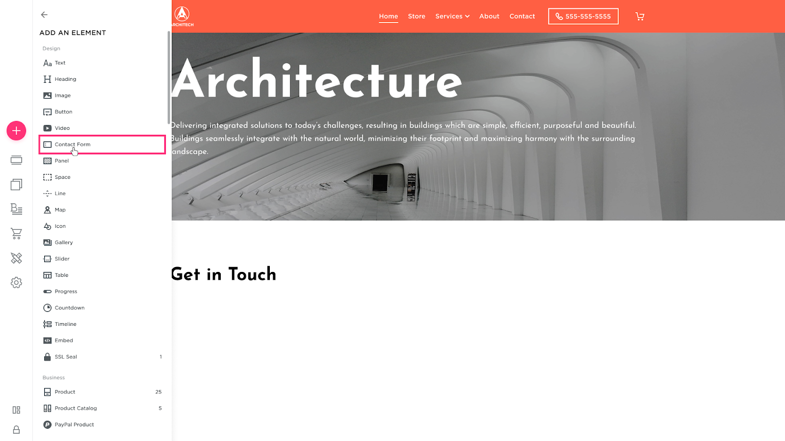 - Choose the Contact Form element from the modal that appears: