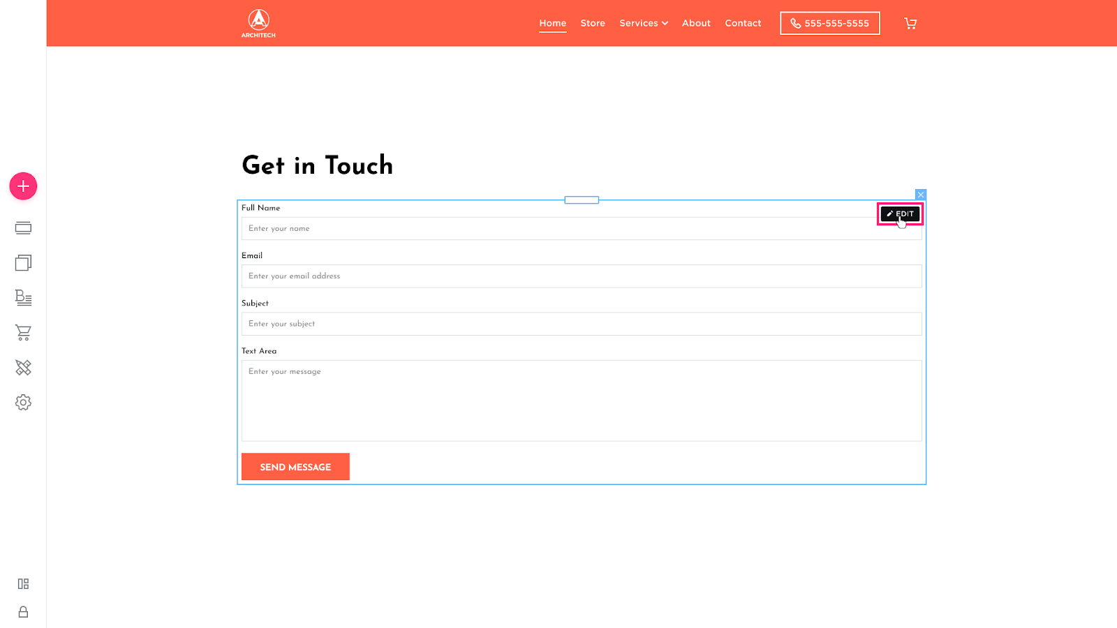 - Click on the contact form, choose the Edit button that appears in its toolbar: