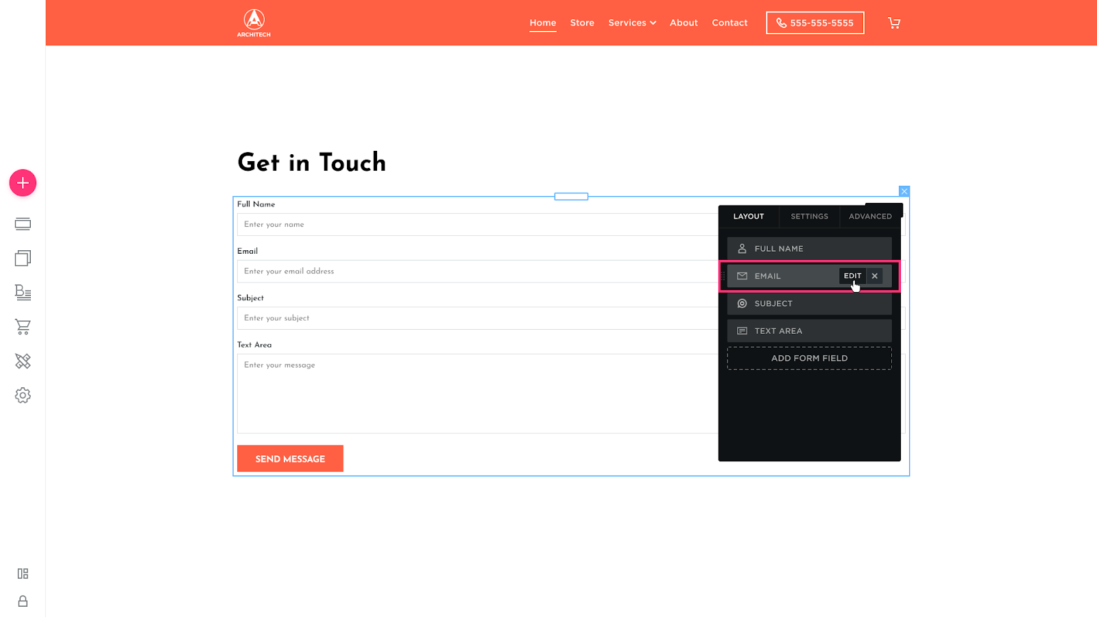 Hover over a Form to display the Edit button in its top-right to be able to modify the Layout, Settings, and Advanced tabs: