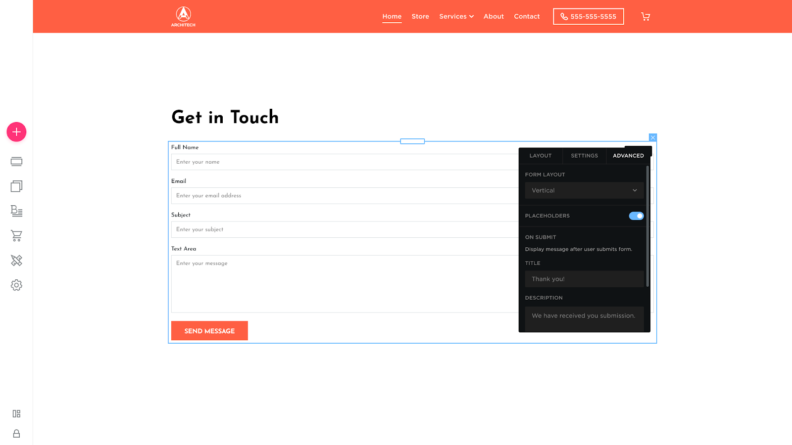 - Title: Click inside the field to modify the message's title the visitor will get after submitting the form.