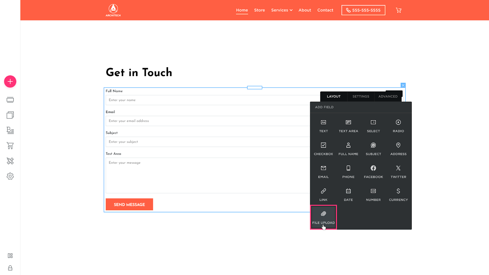 Follow these steps to add the File Upload option to your Contact Form: