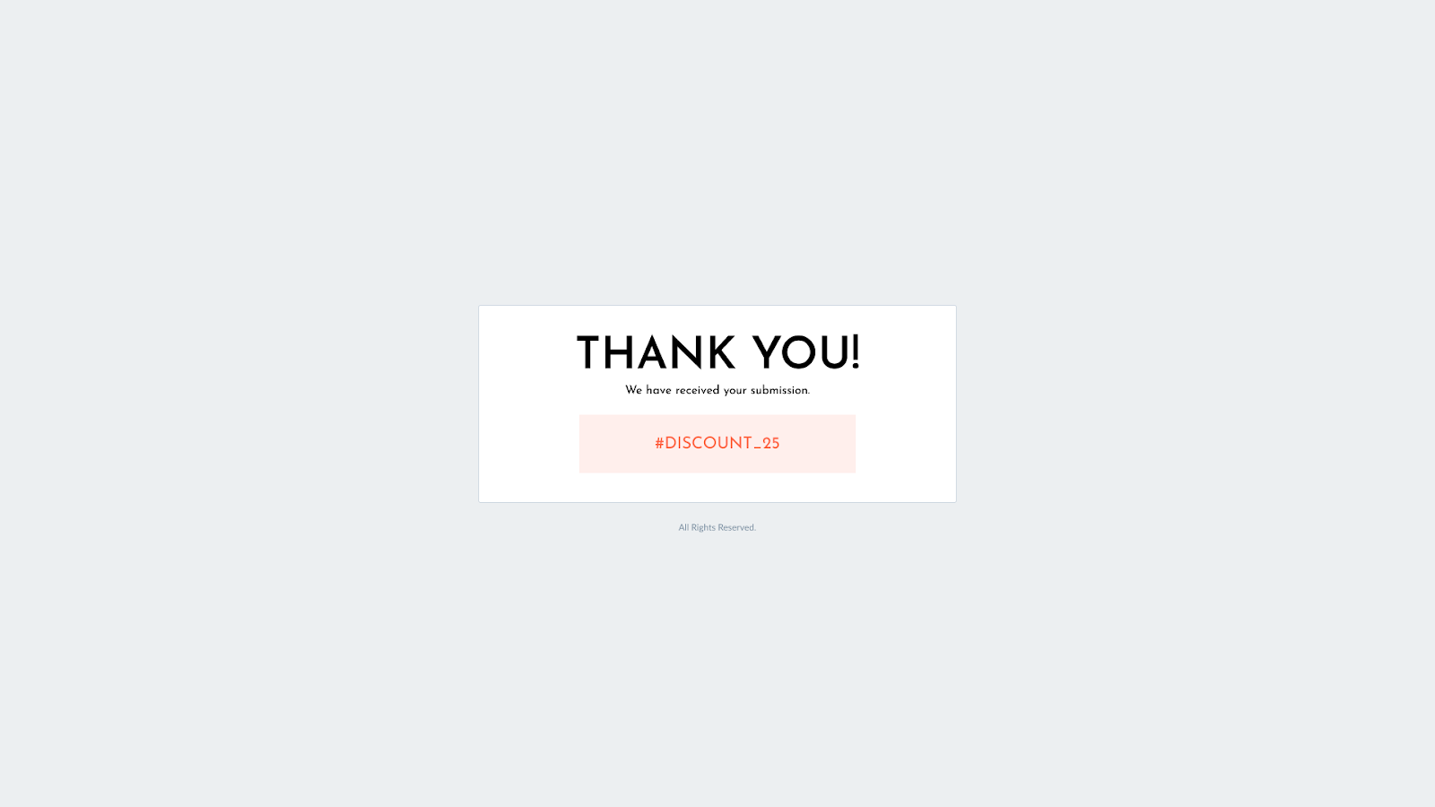 An example of the Thank-You message for website visitors that will appear after submitting the form: