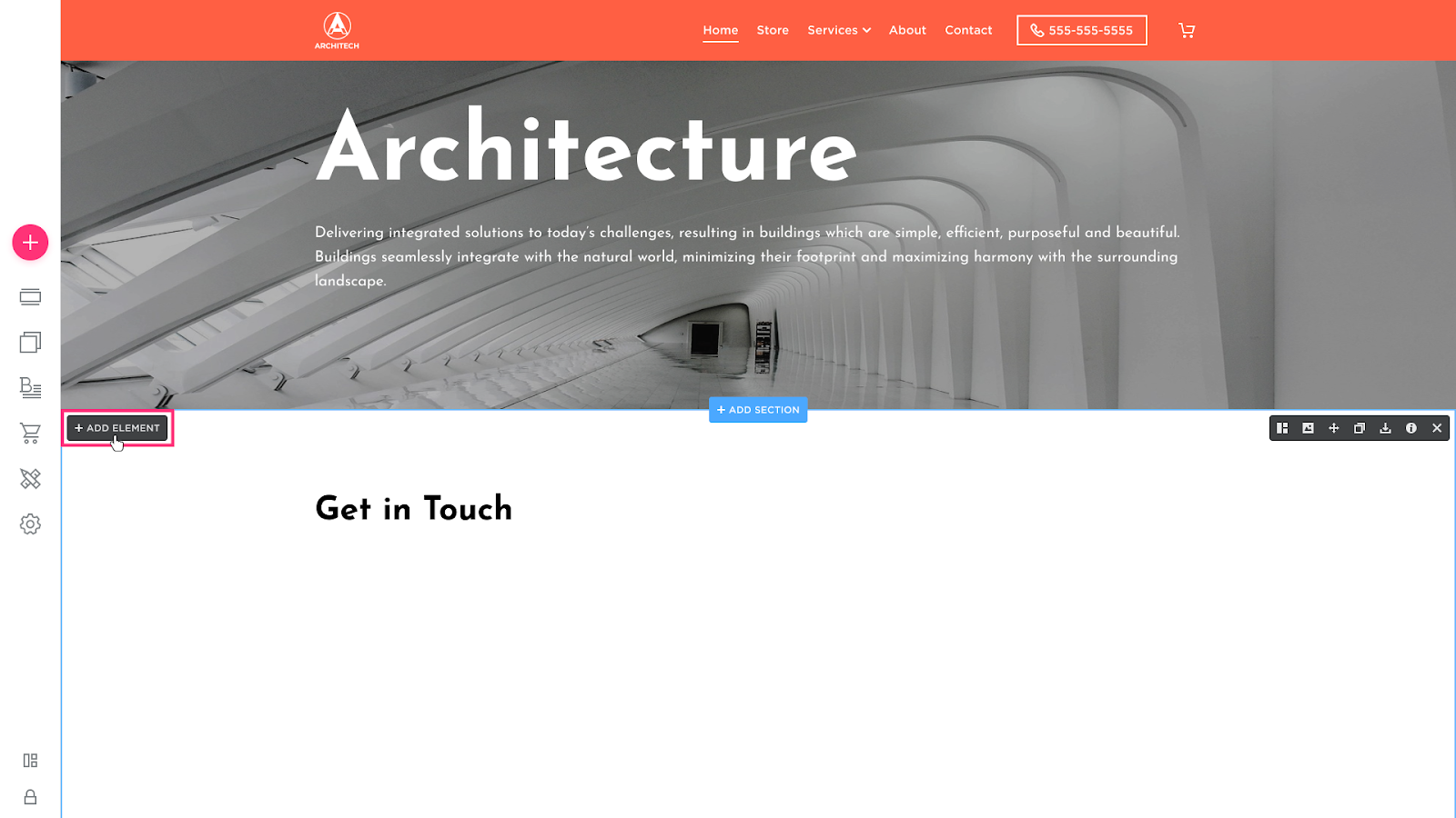 - Hover over the desired section and click Add Element:
